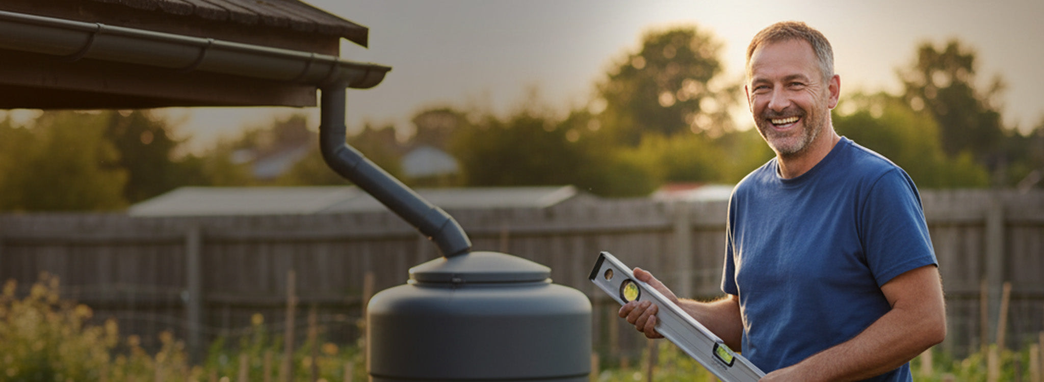 - Stellen Sie das Rohr senkrecht in die Zisterne und fixieren Sie es mit einer geeigneten Rohrschelle.