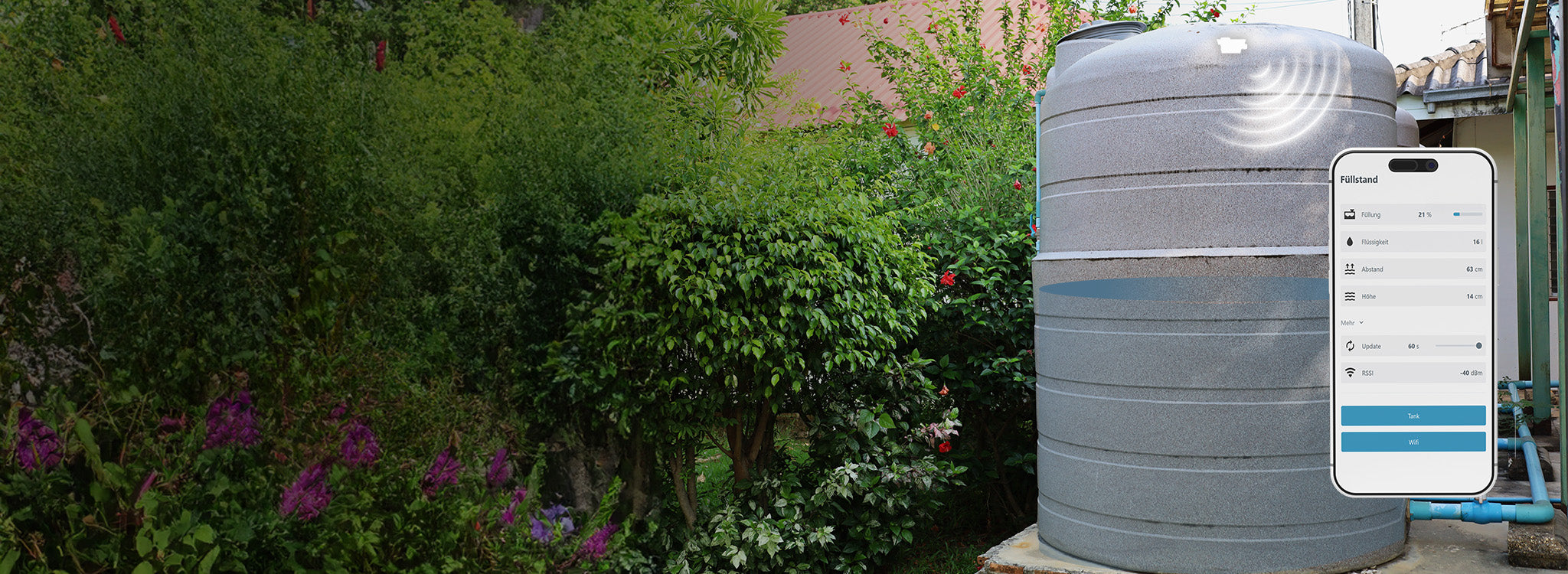 - Wenn kein oder kaum Empfang möglich ist, nutzen Sie einen WLAN-Repeater, um das Signal bis zur Zisterne zu erweitern