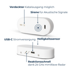 Der Senvolon Präsenzmelder überwacht Räume zuverlässig, präzise und diskret. Dank moderner mmWave-Radartechnologie erkennt der Sensor nicht nur Bewegung, sondern auch ruhende Präsenz – also minimale Regungen wie Atmung oder kleine Körperbewegungen. Damit unterscheidet er sich grundlegend von herkömmlichen PIR-Bewegungsmeldern und eignet sich ideal für smart gesteuerte Innenräume.