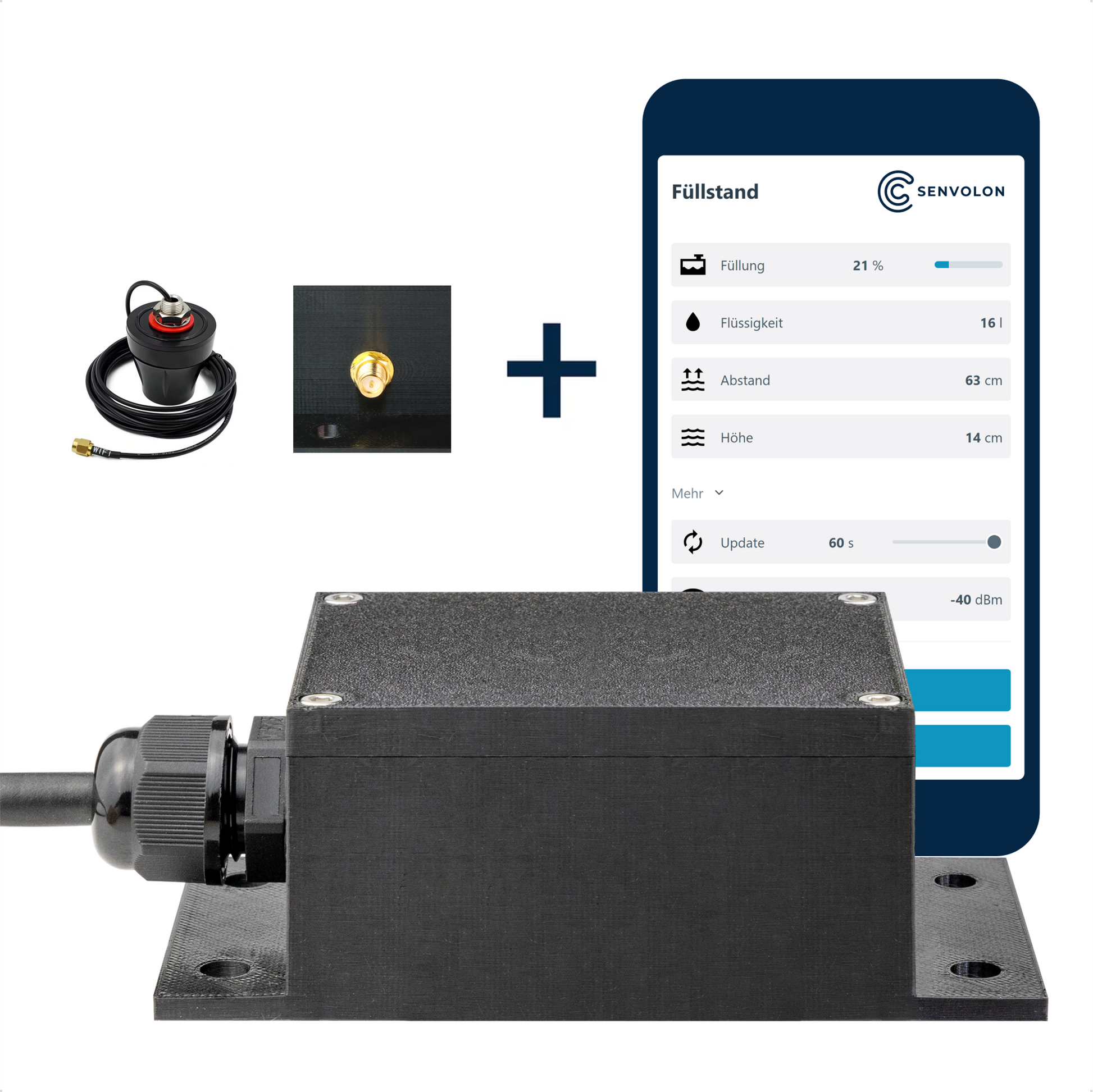 Der Senvolon Füllstandmesser RD mit externem Antennenanschluss und mitgelieferter 2,4 GHz WLAN-Antenne ermöglicht die millimetergenaue, kontaktlose Überwachung von Flüssigkeiten in Tanks, Silos oder Behältern - dank eingesetzter Radartechnologie auch unter anspruchsvollen Umweltbedingungen. Durch das hochpräzise RADAR-Messverfahren wird eine zuverlässige Erfassung selbst bei Nebel, Staub oder Kondensation gewährleistet. Mit einer Reichweite von bis zu 40 m ist das System auch für große oder tiefe Tanks optimal geeignet - auch bei schwierigen WLAN-Empfangsbedingungen. Durch die externe Antenne kann das Signal flexibel positioniert werden, sodass stabile Verbindungen sichergestellt sind und der Sensor auch in herausfordernden Umgebungen zuverlässig arbeitet.